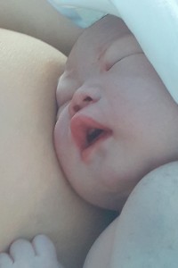 産まれて20分ほど経つと、赤ちゃんはもぞもぞ口を動かしながら、おっぱいを探し始めます。そしてパクッとお母さんの乳首に吸い付く赤ちゃん。(産後すぐのBrest Crawling,