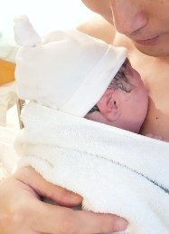 【出産当日】38週での出産となりましたが、陣痛の進みがかなり早く、病院に着いた時には子宮口が全開という状態でした。家で陣痛に耐えながら順子さんと電話し、安心できたのを覚えています。病院で落ち合い、陣痛の痛みでずっと目を閉じていたのですが、順子さんがテキパキと病院側とやり取りして下さり、本当に助かりました。赤ちゃんの心拍が落ちているからすぐに産みましょうと慌てる病院と落ち着いて私をケアしてくれる順子さんは、ぼーっとする頭でしっかり感じ取れていました。イギリスならではと思い、プールバースを希望していましたが、急ぐ必要があると言われ叶いませんでした。順子さんに楽な体勢にとアドバイスをいただき、膝立ちでベッドにもたれながら出産しました。病院に着いてから45分後でした。順子さんはプールバースができなくてごめんね、と言ってくださいましたが、私は全く残念とは思わず、とても満足できるお産だったなぁと感じています。