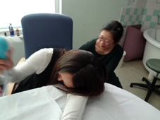 ・新生児へのオイルマッサージを実践しながら教えてもらえた。